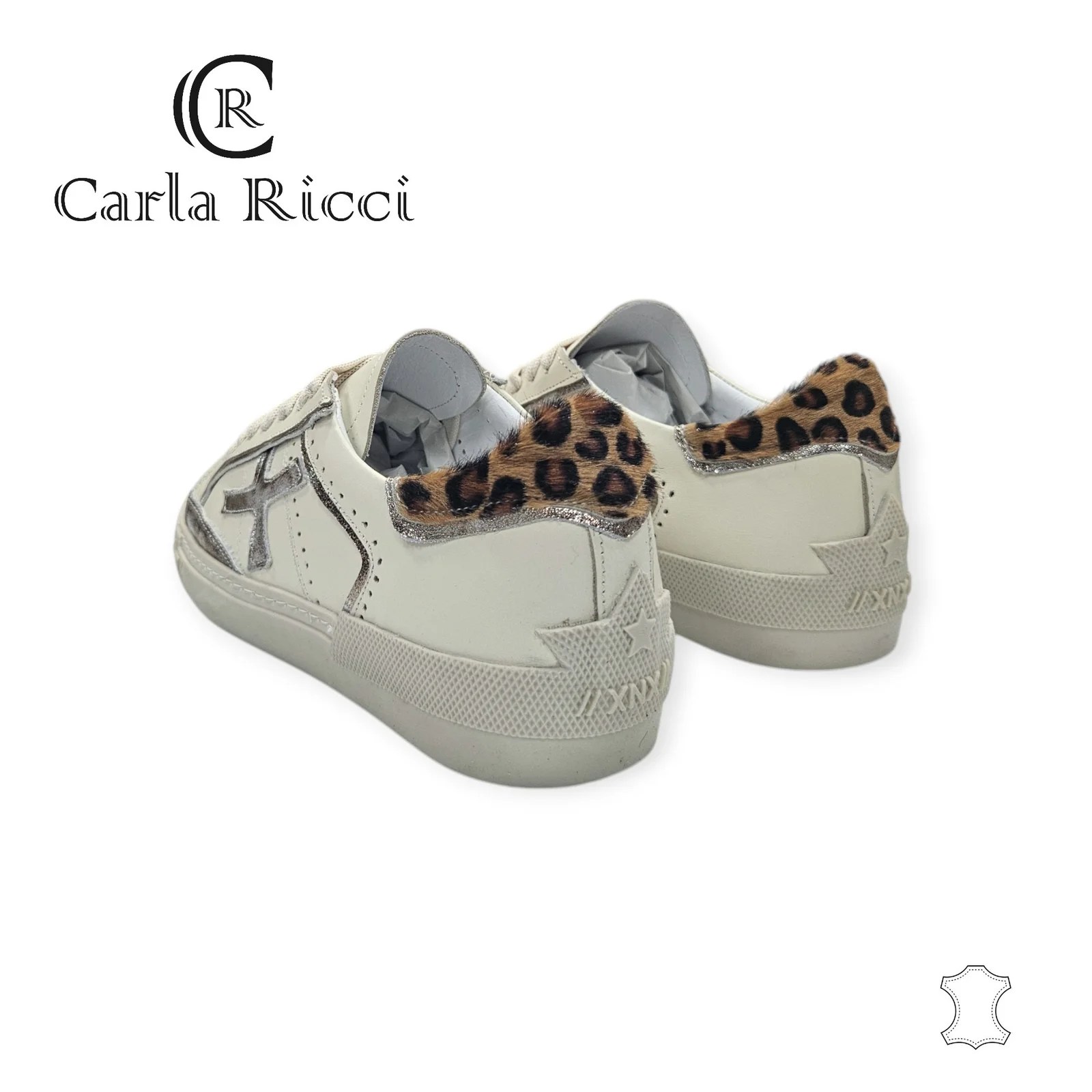 Carla Ricci P205 0115 krém-ocelot sneaker újdonság a márka ajánlásaiban. Természetes bőr felsőrész. Belseje és talpbélése is bőr. Talpa kiváló minőségű tartós anyag. Talpvastagság elől 2 cm, saroknál 3 cm.